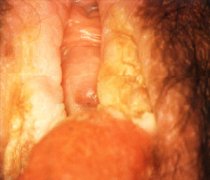萎缩性外阴白斑图片,肝肾不足或夫妻生活过度,肾精受损,精血两伤,不能润肤而致外阴干枯。症侯特点阴部刺痒,夜间为重,外阴萎缩,病损处干燥薄脆,严重者大阴唇扁平[详情]